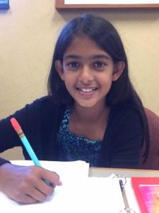 Avani, 10, is going into 6th grade. She likes to play soccer on the Wheaton Wings travel team and dance classical Indian Kathak. Avani writes realistic fiction and mysteries. She hopes to be an optometrist and publish a mystery series.